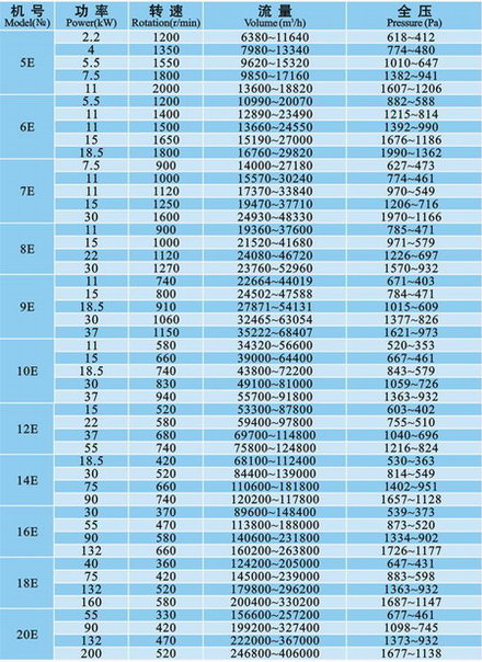 常用離心通風(fēng)機(jī)系列